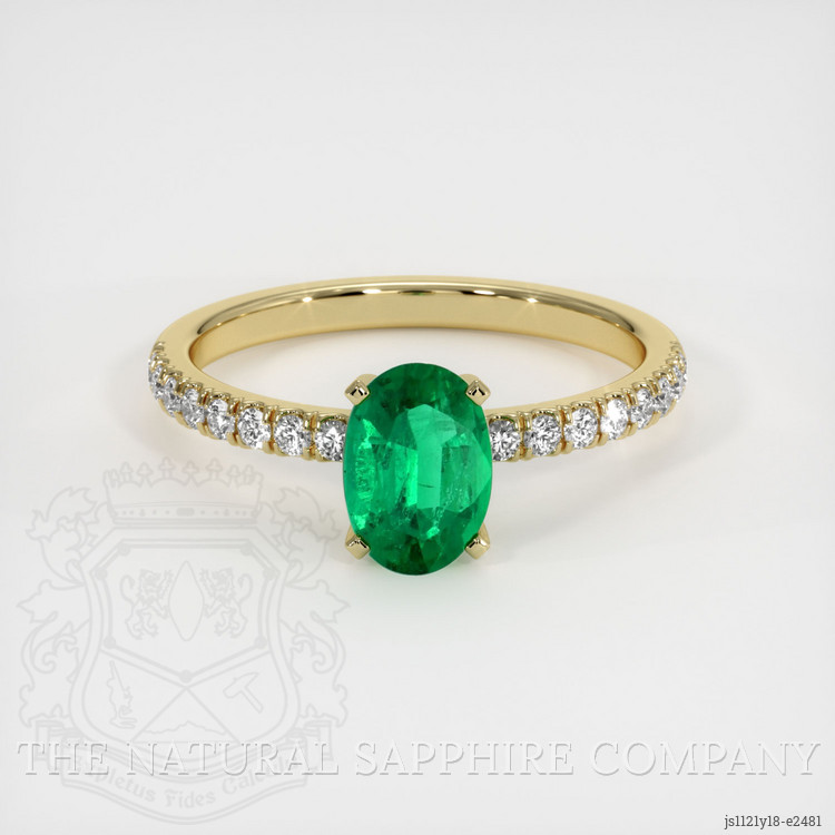 Pave Emerald Ring 0.80 Ct., 18K Yellow Gold