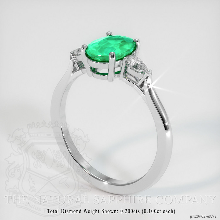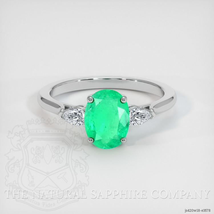 Three Stone Emerald Ring 0.94 Ct., 18K White Gold