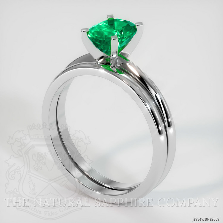 Wedding Set Emerald Ring 0.94 Ct., 18K White Gold