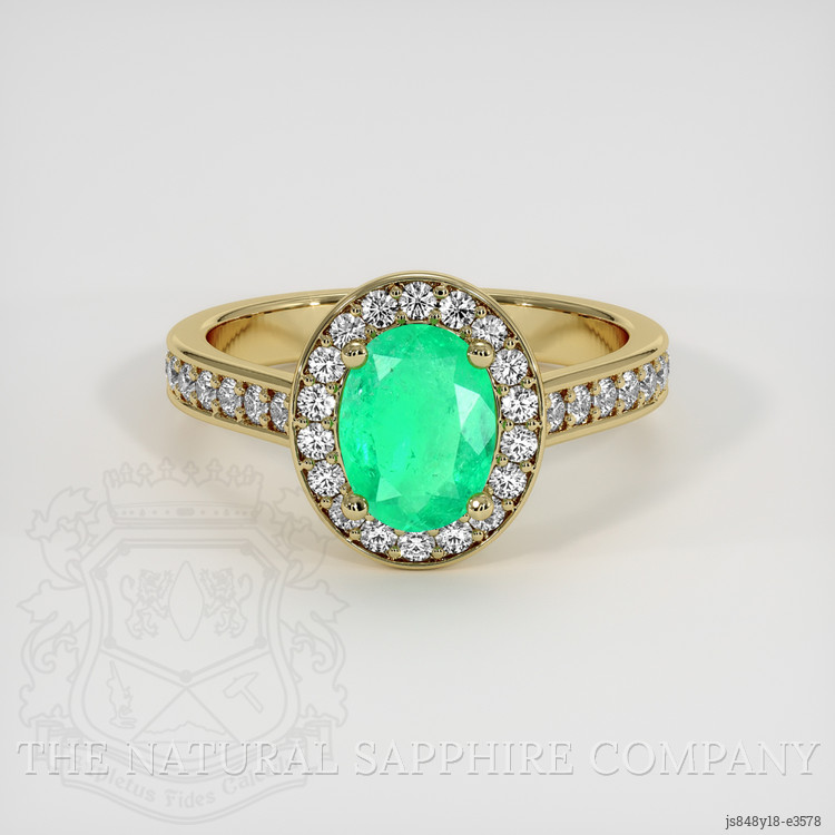 Pave Emerald Ring 0.94 Ct., 18K Yellow Gold