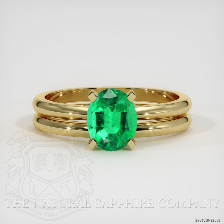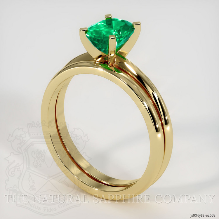 Wedding Set Emerald Ring 0.94 Ct., 18K Yellow Gold