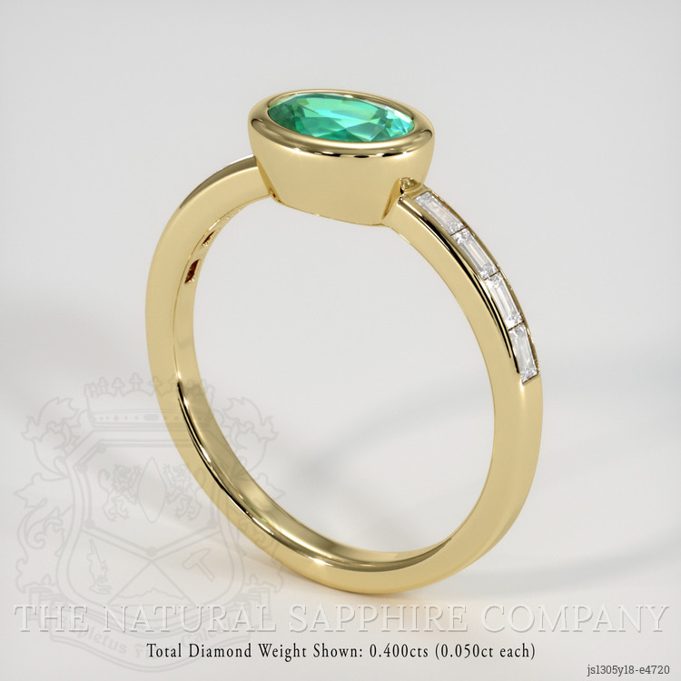 Complementing the emerald's unparalleled elegance, the ring features an array of white baguette-shaped natural diamonds. These diamonds, weighing approximately 0.40 carats collectively, are meticulously arranged to maximize their brilliant sparkle. With a clarity grade of VS1 to VS2 and a pristine color grade of E, the diamonds stand as a testament to luxury and sophisticated design. They mirror the craftsmanship synonymous with renowned luxury jewelry brands, ensuring each piece sparkles with timeless beauty. The diamonds are elegantly set in the band, enhancing not only the emerald's radiant green but also the inherent beauty and value of each diamond itself.