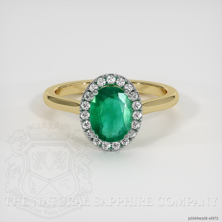 From the heart of Zambia, a land renowned for its vibrant natural resources, comes a gemstone that surpasses all expectations. The 1.13 carat oval-shaped green emerald at the centerpiece of this exquisite ring has journeyed far, bearing the essence of its origins in every facet. With dimensions of 7.97 x 6.03 x 3.66 mm and a mixed brilliant cut, this emerald captivates with its intense color saturation and slightly included clarity that tells the story of its natural formation. Its excellent polish ensures that each surface reflects light beautifully, inviting the eye to explore its depth. Enhanced using standard techniques, this emerald is more than a gemstone; it is a narrative of nature and craftsmanship brought together by The Natural Emerald Company.