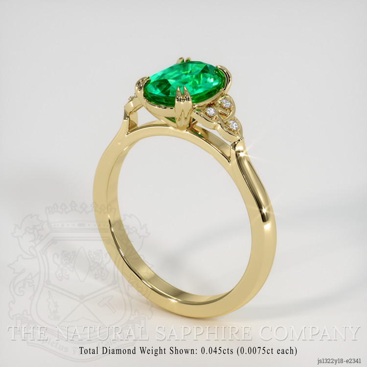 Accent Stones Emerald Ring 1.15 Ct., 18K Yellow Gold