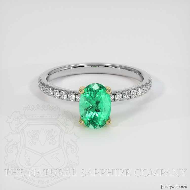 Pave Emerald Ring 1.16 Ct., 18K Yellow & White