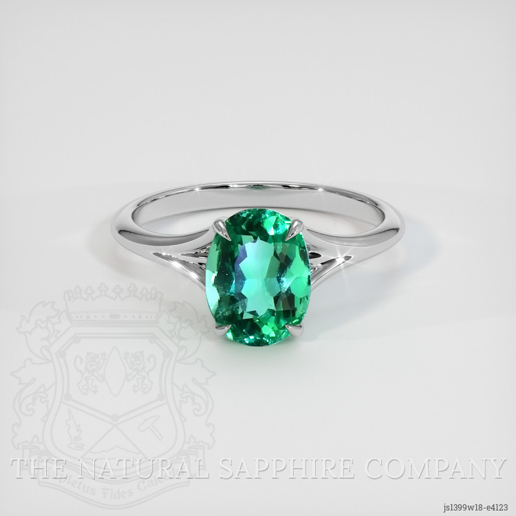 Solitaire Emerald Ring 1.18 Ct., 18K White Gold
