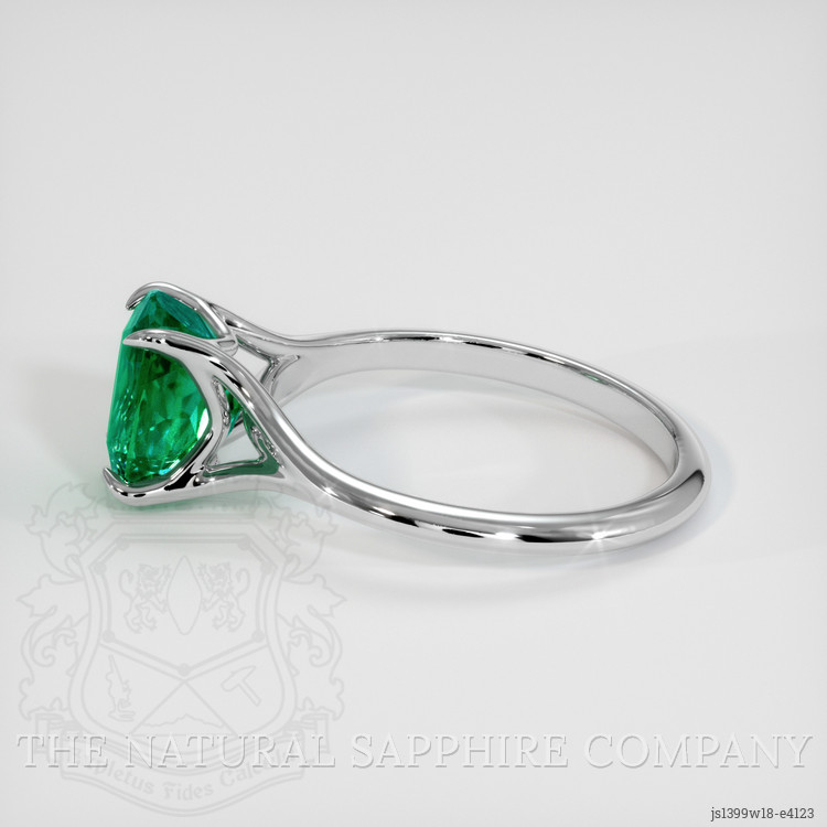 Attention to detail is paramount in our craftsmanship, and this is evident in every curve and contour of the ring. The band, skillfully wrought from platinum 950, embodies both strength and resilience. Its sleek and understated elegance ensures that all attention remains anchored on the emerald. The symmetrical elegance of the band's design and its seamless connection to the prongs showcases mastery in craftsmanship and attentiveness to proportion. This thoughtful design consideration ensures a balance wherein the intricacy of metalwork does not overshadow the commanding presence of the central emerald.