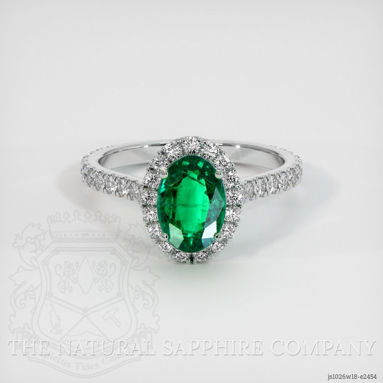 Pave Emerald Ring 1.21 Ct., 18K White Gold