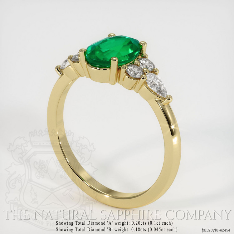 Accent Stones Emerald Ring 1.21 Ct., 18K Yellow Gold