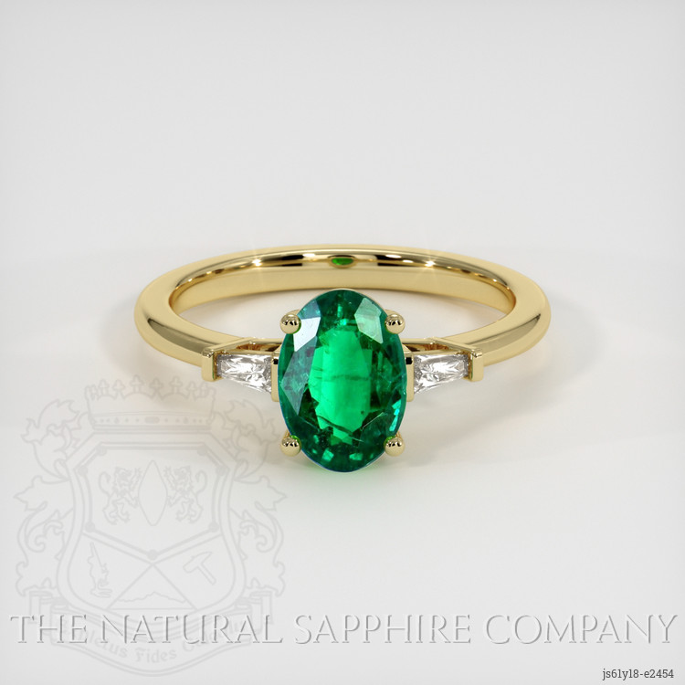 Three Stone Emerald Ring 1.21 Ct., 18K Yellow Gold