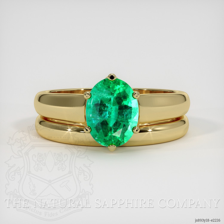 Wedding Set Emerald Ring 1.22 Ct., 18K Yellow Gold