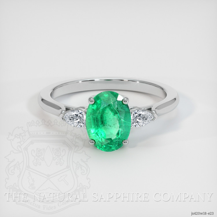 Three Stone Emerald Ring 1.34 Ct., 18K White Gold