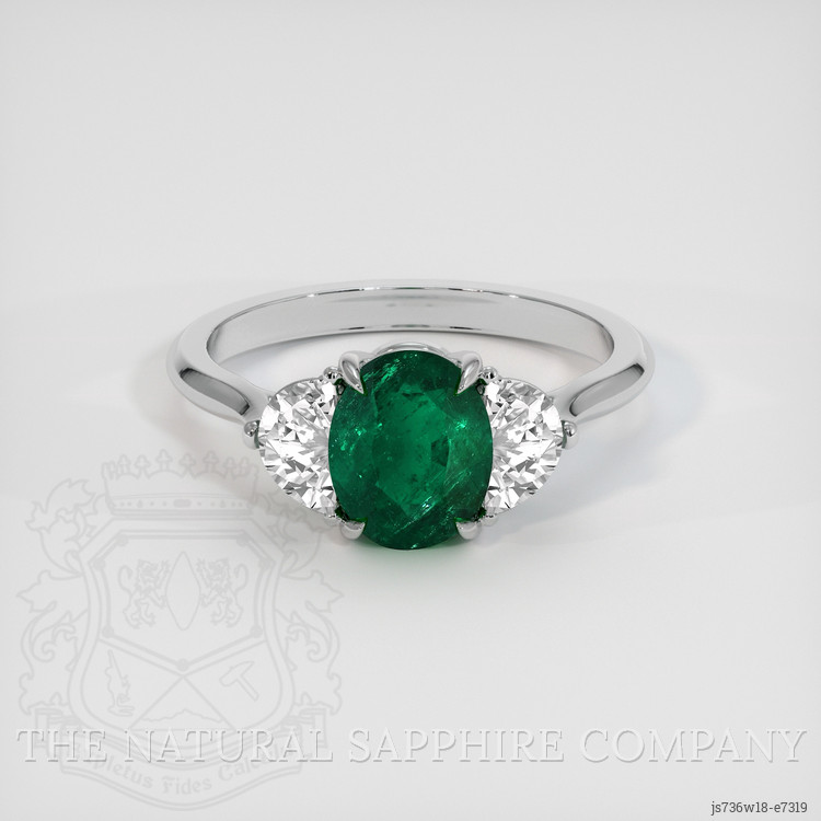 Three Stone Emerald Ring 1.37 Ct., 18K White Gold