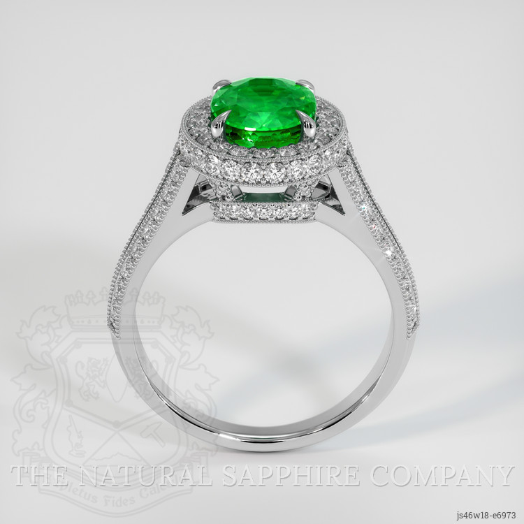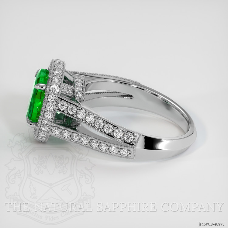 The emerald’s color saturation radiates with an intensity that mirrors the vibrancy of life itself, promising to evoke emotions of joy and excitement. It stands as a symbol of the wearer’s individuality, a kaleidoscope of dreams embodied in its gleaming surface. Its clarity is a testament to the beauty found in nature's uniqueness, an “included” gem evaluated at eye level, which only enhances its authenticity and charm. Cradling this verdant treasure are meticulously set diamonds, each one a testament to The Natural Emerald Company’s dedication to perfection and excellence.