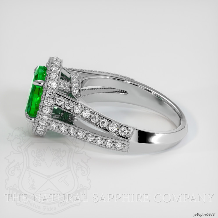 The emerald’s color saturation radiates with an intensity that mirrors the vibrancy of life itself, promising to evoke emotions of joy and excitement. It stands as a symbol of the wearer’s individuality, a kaleidoscope of dreams embodied in its gleaming surface. Its clarity is a testament to the beauty found in nature's uniqueness, an “included” gem evaluated at eye level, which only enhances its authenticity and charm. Cradling this verdant treasure are meticulously set diamonds, each one a testament to The Natural Emerald Company’s dedication to perfection and excellence.