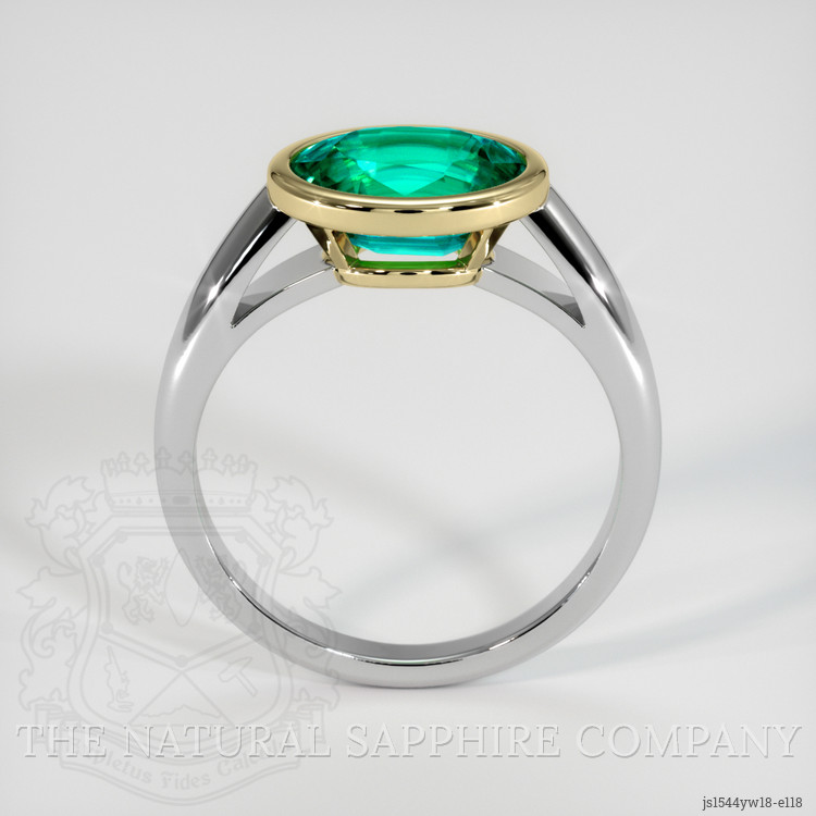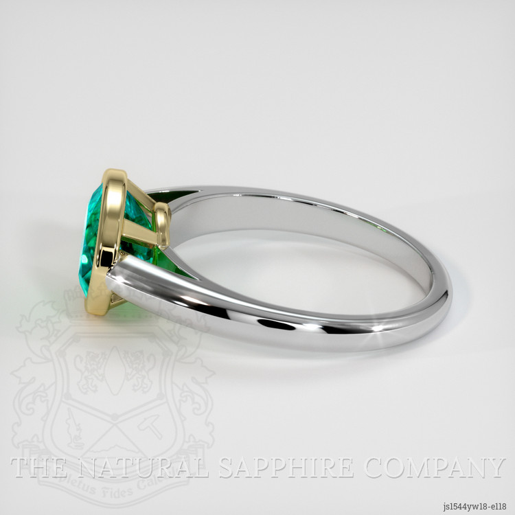 This meticulously cut emerald is then set into a harmonious marriage of 18K yellow gold and 18K white gold. The band, a union of two metals, reflects the seamless bond of two souls. The golden hues embrace the emerald, highlighting its vibrant green, while the white gold provides a modern, timeless elegance. Each detail of the ring is attentively designed, echoing the bond it represents - strong, enduring, and unparalleled.