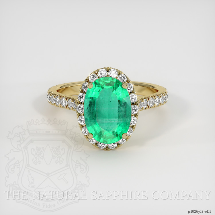Pave Emerald Ring 1.89 Ct., 18K Yellow Gold