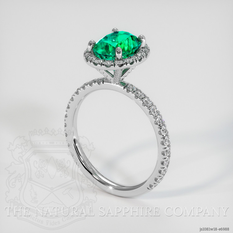 At The Natural Emerald Company, we understand that finding the perfect piece of jewelry is more than just a transaction. It's a journey to find something that resonates with your unique taste and story. Introducing our exquisite, custom-crafted emerald ring, tailored to be as unique as you are. Central to this piece is a stunning 1.97 carat oval-shaped green emerald, sourced from the renowned mines of Colombia. Its transparency and intense color saturation make it nothing short of captivating, ensuring that the depth of its radiant green tells a tale all on its own. With dimensions of 8.76 x 6.69 x 6.08 mm and a mixed brilliant cut, this emerald offers unparalleled brilliance, casting a captivating glow at every angle.