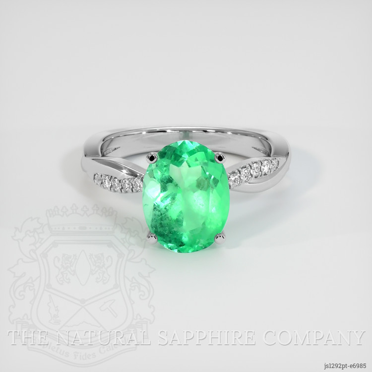 Introducing an exquisite piece from The Natural Emerald Company, this stunning ring showcases a 2.85 carat oval green emerald, expertly cut to highlight its natural beauty and unique characteristics. With dimensions of 10.52 x 8.08 x 5.82 mm, the emerald's mixed brilliant cut enhances its enchanting appearance, allowing light to dance through its depths. Its clarity is graded as very slightly included at eye level, ensuring the gemstone retains authenticity while presenting a captivating transparency. The intense color saturation further distinguishes this emerald, granting it a rich and vibrant hue that echoes the lush landscapes of its Colombian origin.