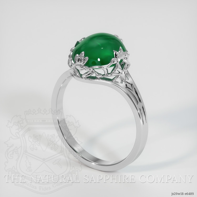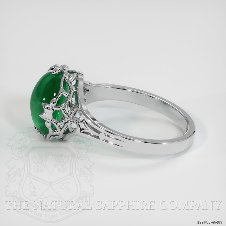 Indulge yourself in the timeless allure of unparalleled elegance with The Natural Emerald Company's exquisite masterpiece, a ring that captures the romantic spirit of true luxury. At its heart lies a mesmerizing 3.25 carat oval green emerald, a captivating gem with dimensions of 10.46 x 8.81 x 5.24 mm. This remarkable cabochon-cut jewel boasts an intense color saturation that echoes the lush landscapes of its Zambian origin. The emerald's inherent inclusions, evaluated at eye level, only enhance its natural beauty, celebrating the authenticity of nature's artistry. An excellent polish ensures that each facet of this gem radiates brilliance, offering a reflection of unwavering elegance to its beholder.