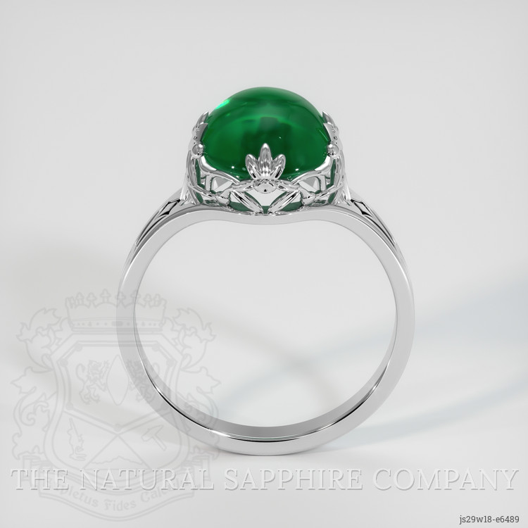 Nestled within the embrace of platinum 950, this ring exudes sophistication and grandeur. The pure opulence of platinum provides a flawless setting that perfectly complements the emerald's vibrant allure, showcasing a symphony of refinement and grace. The icy brilliance of the platinum captures the light elegantly, highlighting the gem's enchanting hue in every facet. Meticulously designed, the setting serves as a testament to the skilled craftsmanship synonymous with The Natural Emerald Company. Each curve and contour of the band has been thoughtfully conceived to create an aesthetic of delicate luxury, where the gem seemingly floats in its resplendent captivity.