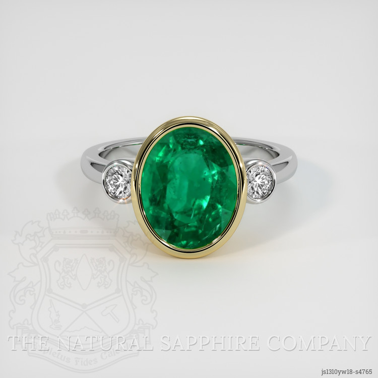 Three Stone Emerald Ring 3.54 Ct., 18K Yellow & White