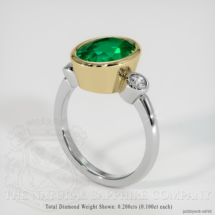 Complementing the central emerald are impeccably set white diamonds, whose total weight is approximately 0.20 carats. Each diamond, round in shape with a clarity of Very Slightly Included (VS1, VS2) and a superior F color grade, is strategically placed within 18K white gold settings. The juxtaposition of yellow and white gold embodies a sophisticated duality, creating not just contrast, but a harmonious blend that elevates the ring from a mere accessory to an artwork of epic grandeur. The diamonds are an ode to purity and clarity, symbolizing the brilliance of wisdom and the clarity of thought—qualities celebrated by those who adorn such finery.