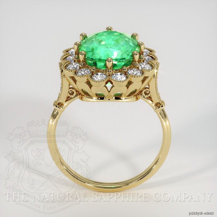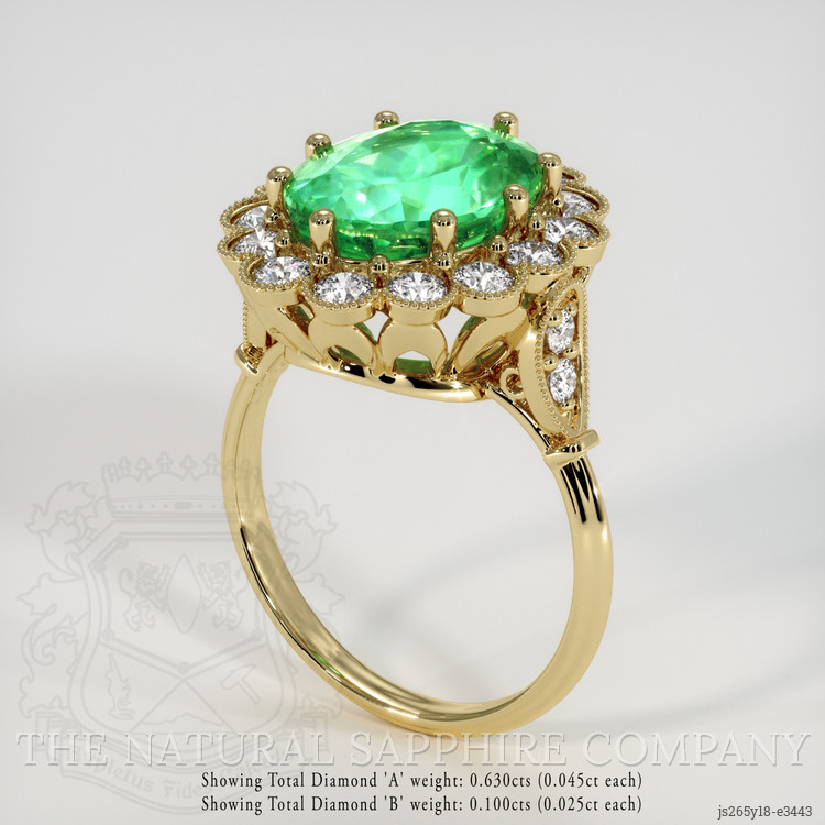 The entirety of this luxurious ring is set in 18K yellow gold, offering both contrast and harmony with the gemstones it supports. Particularly noteworthy is the robust yet refined setting, meticulously crafted to guarantee the security of the precious emerald and diamonds. This aspect of the design ensures peace of mind, allowing one to cherish and wear this stunning piece with confidence. The Natural Emerald Company's dedication to meticulous craftsmanship and superior materials is evident in every facet of this ring, making it not only a beautiful piece of jewelry but an investment in timeless elegance.