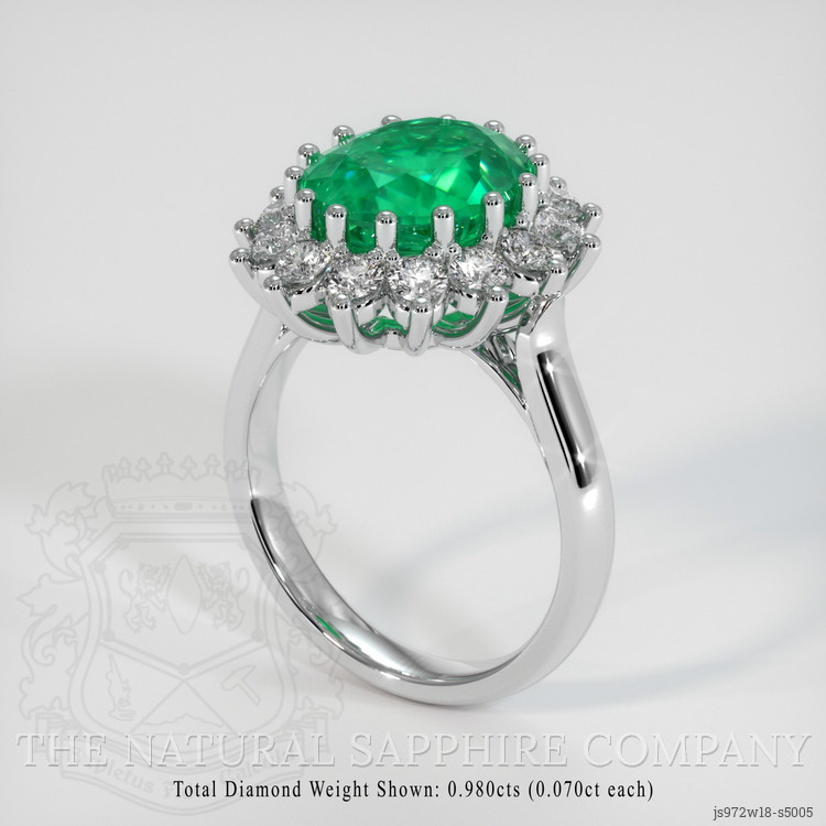 Halo Emerald Ring 4.85 Ct., 18K White Gold