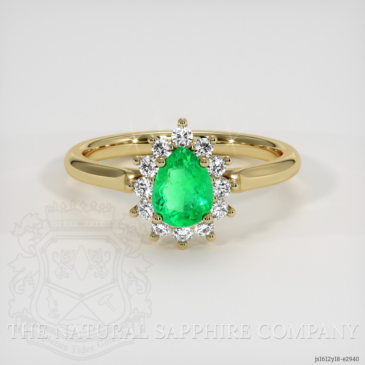 The ring is an exquisite piece of jewelry that embodies both elegance and sophistication, making it an ideal choice for an educated buyer seeking value and uniqueness. At its center, the ring features a stunning transparent 0.50 carat pear-shaped green emerald. This emerald, sourced from the esteemed mines of Colombia, is renowned for its vibrant color and exceptional quality. With dimensions of 6.62 x 4.94 x 3.06 mm, the emerald showcases a mixed brilliant cut that enhances its brilliance and allure.
