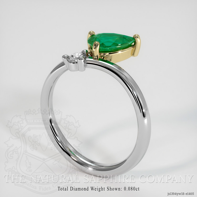 The eye is immediately drawn to the vivid allure of the 0.53 carat pear-shaped green emerald, the crowning jewel of our exquisite ring. This gemstone, lovingly sourced from the storied lands of Colombia, speaks volumes of a history rich in tradition and craftsmanship. At The Natural Emerald Company, we take immense pride in presenting this emerald with its intense color saturation and mixed brilliant cut, a testament to the legacy of nature’s artistry honed over millennia. With dimensions of 7.08 x 5.07 x 3.15 mm, the emerald is neither too bold nor too timid, striking a harmonious balance that will captivate and enchant for generations to come.