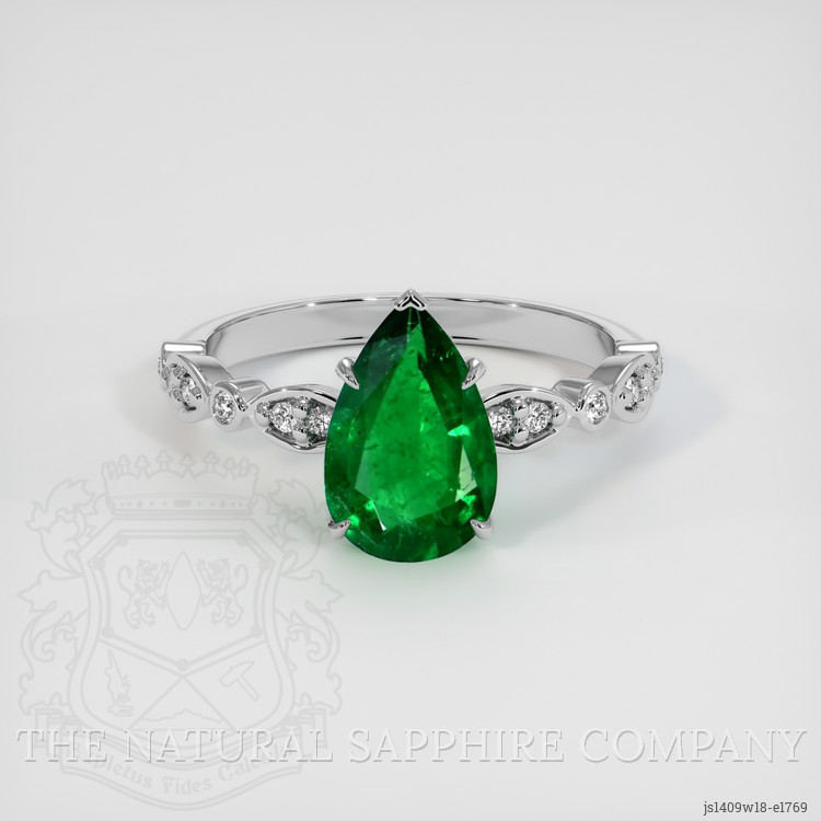 Introducing an exquisite blend of elegance and heritage, this ring from The Natural Emerald Company is more than a timeless adornment; it is a masterpiece destined to become a cherished family heirloom. The centerpiece of this remarkable piece is a stunning transparent 1.49 carat pear-shaped green emerald, carefully sourced from the renowned mines of Zambia. Measuring 10.68 x 7.05 x 3.74 mm, this emerald showcases a mixed brilliant cut that reflects light with enchanting brilliance. Its clarity is graded as very slightly included, evaluated at eye-level, ensuring that the emerald's intrinsic beauty and vivid color saturation captivate any observer. The remarkable clarity combined with its excellent polish enhances the emerald's breathtaking glamour, making it a focal point of admiration and allure.