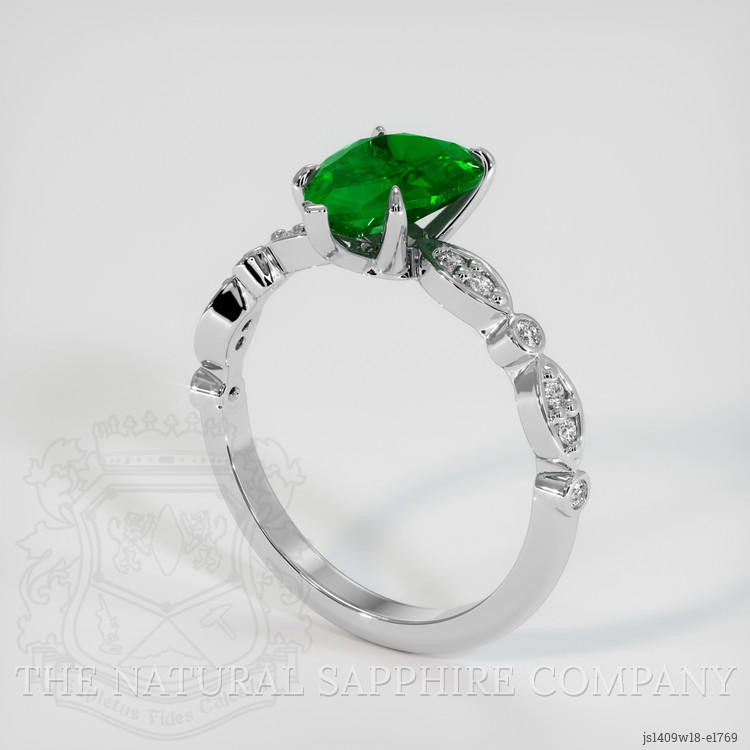 Pave Emerald Ring 1.49 Ct., 18K White Gold