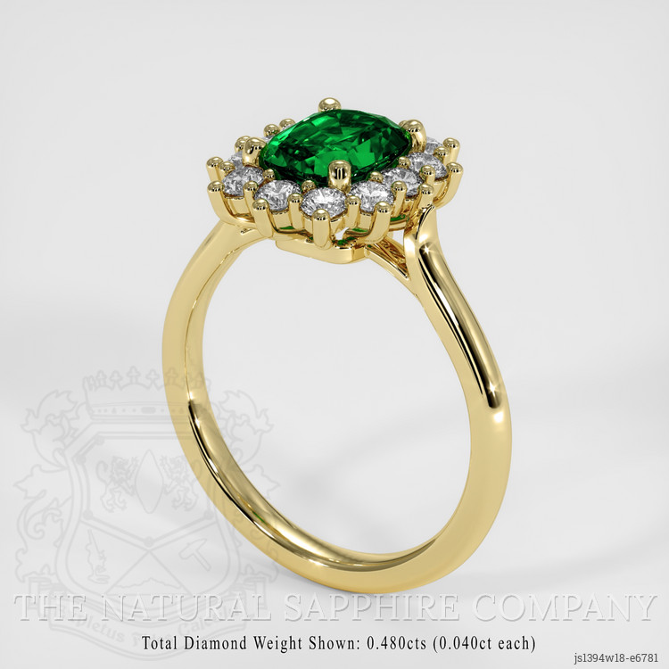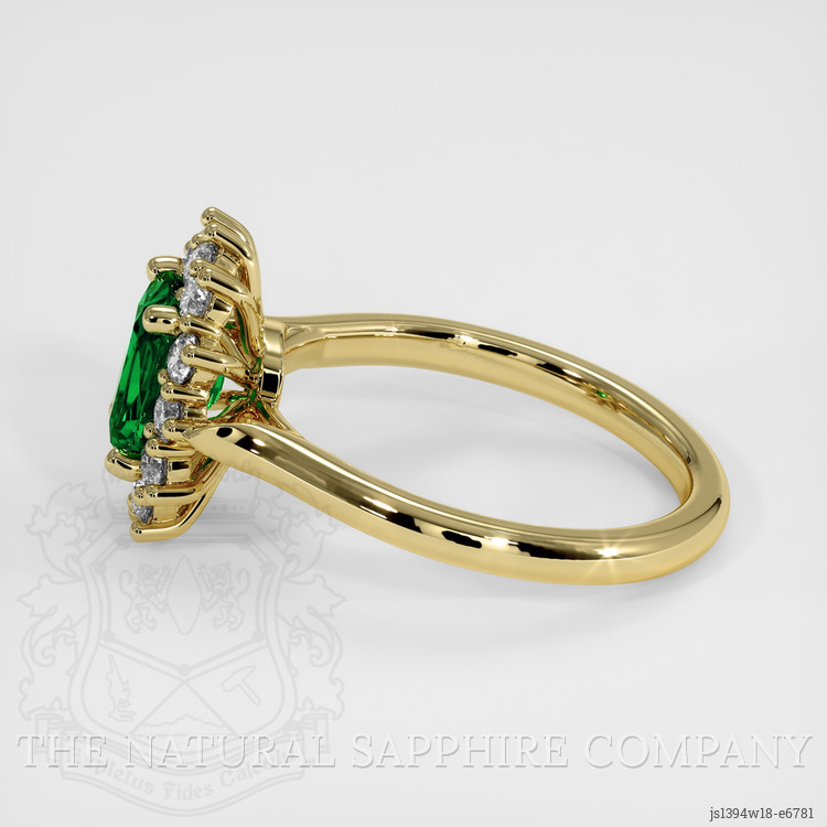 Embodying elegance and prestige, our Colombian emerald is set amidst a halo of dazzling white round diamonds, weighing approximately 0.49 carats. These diamonds, with a clarity of VS1-VS2, possess a near-impeccable nature, and their color grade E ensures a scintillating display of pure brilliance. This harmonious marriage between emerald and diamonds creates a dance of light unmatched by lesser creations, a celebration of nature's artistry elevated by human craftsmanship. Enveloped entirely in Platinum 950, a noble metal renowned for its lustrous sheen and enduring strength, this ring stands as a guardian over the precious stones, the platinum setting itself a testament to the exclusivity and luxury that The Natural Emerald Company is proud to offer.