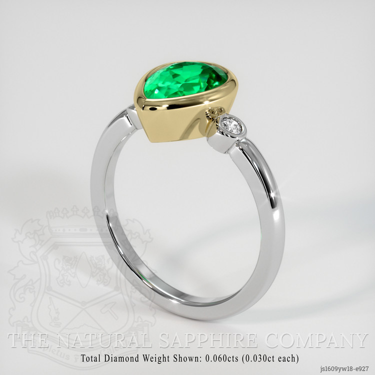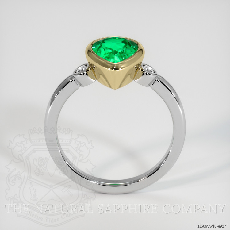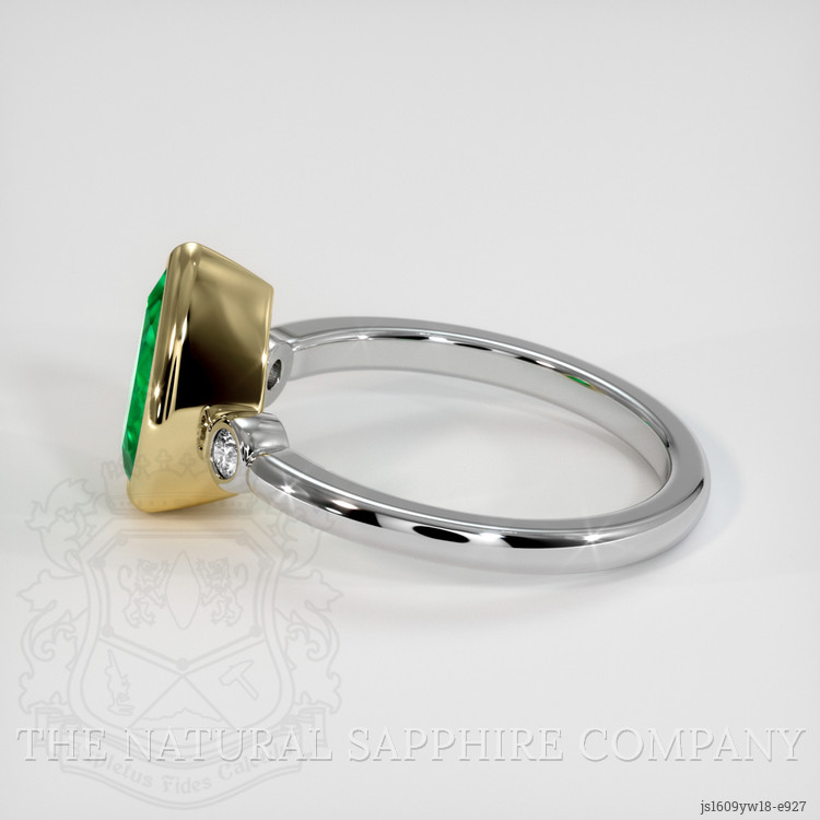 Enhancing this breathtaking centerpiece are meticulously selected white round diamonds, totaling 0.06 carats, known for their exceptional clarity at VS1 and VS2 grades. The diamonds, with their flawless F-color grade, evoke a rare purity and illuminate the emerald’s depths with a celestial brilliance. Set in a harmonious blend of 18K yellow and white gold, the interplay of warm and cool tones creates a unique duality that is both contemporary and eternal. This setting not only serves to highlight the enchanting emerald but also ensures a timeless style suited for any cherished occasion.