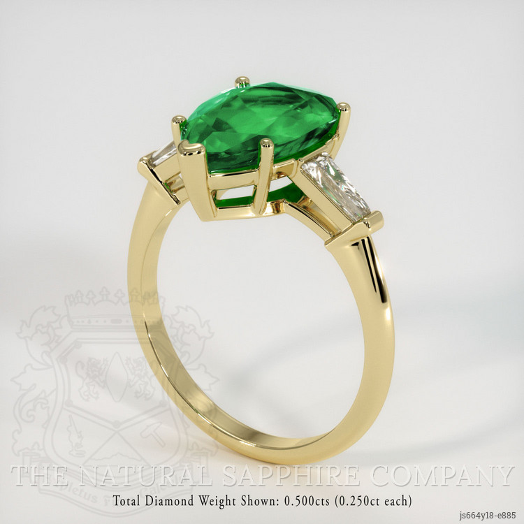Also featured in the ring: White baguette (tapered) shaped diamonds, weighing approx 0.50 carats, clarity Very Slightly Included (VS1, VS2) and a color grade of E.