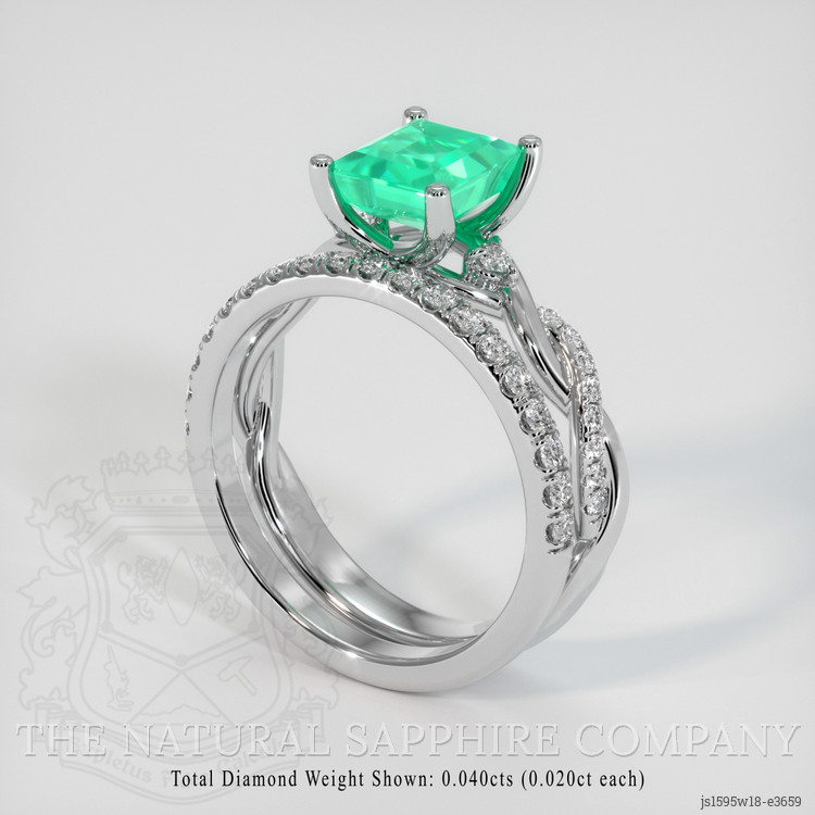 Pave Emerald Ring 1.32 Ct., 18K White Gold