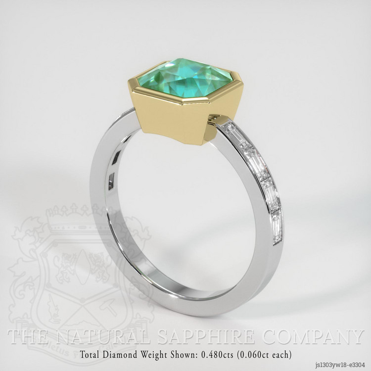 Also featured in the ring: White baguette (straight) shaped diamonds, weighing approx 0.48 carats, clarity Very Slightly Included (VS1, VS2) and a color grade of E.
