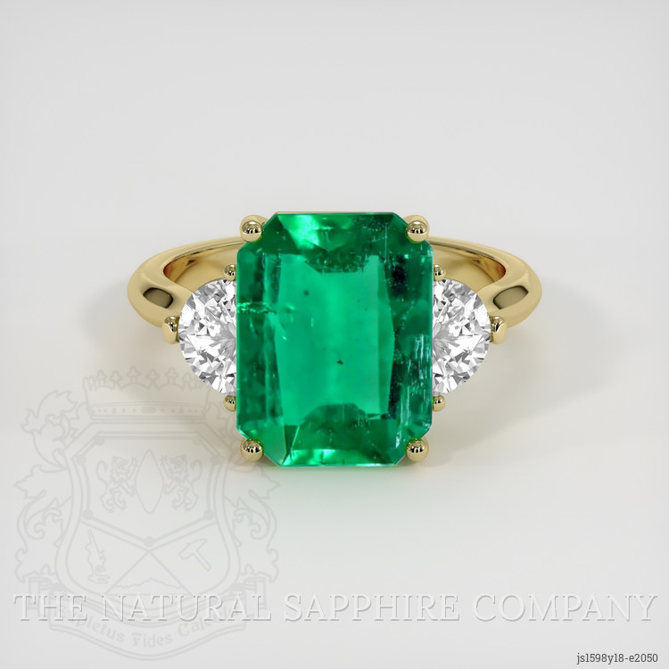 Three Stone Emerald Ring 2.29 Ct., 18K Yellow Gold