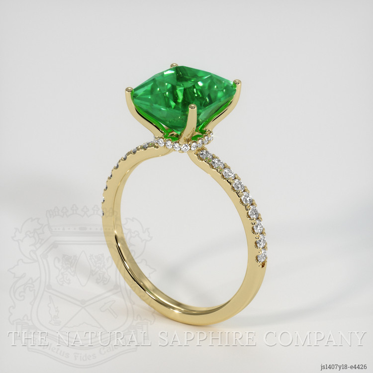 Pave Emerald Ring 3.17 Ct., 18K Yellow Gold