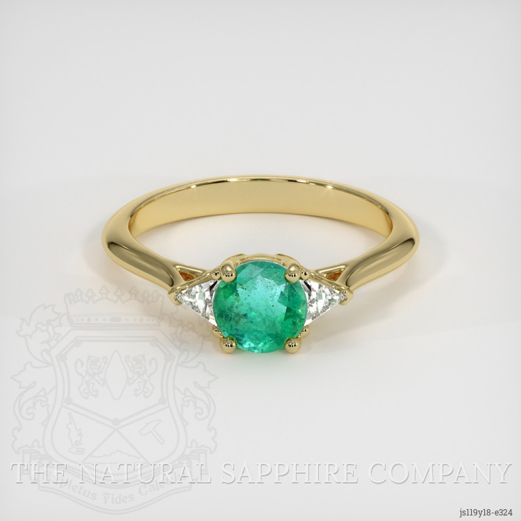Three Stone Emerald Ring 0.58 Ct., 18K Yellow Gold