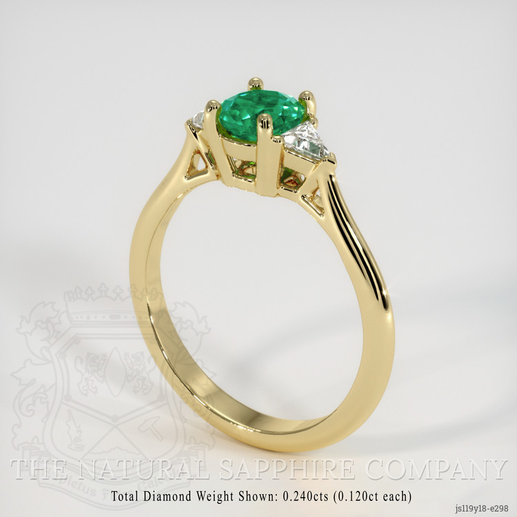Three Stone Emerald Ring 0.66 Ct., 18K Yellow Gold