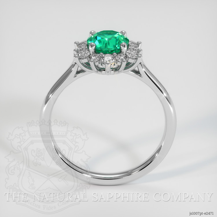 Introducing a timeless marvel from The Natural Emerald Company: a captivating platinum ring that embodies elegance and discerning craftsmanship. At its heart lies a stunning 0.76 carat round shape green emerald sourced from the renowned mines of Zambia, celebrated for yielding some of the world's most exquisite emeralds. The gemstone measures 6.15 x 5.99 x 3.87 mm and is meticulously cut in a mixed brilliant style, designed to refract light beautifully, unveiling an entrancing play of vivid green hues. Its medium color saturation ensures a rich but natural appearance, catering to both subtle refinement and vibrant allure. Evaluated as slightly included at eye level, this emerald enjoys an excellent polish, enhancing its remarkable transparency and ensuring it remains a focal point of admiration.