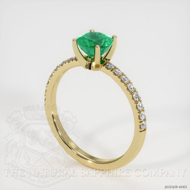 Pave Emerald Ring 0.80 Ct., 18K Yellow Gold