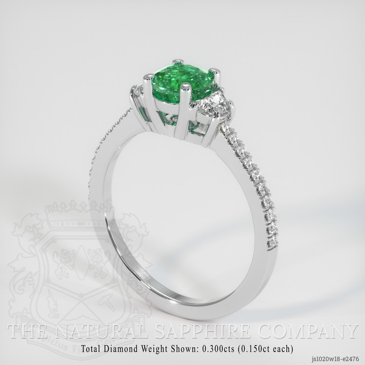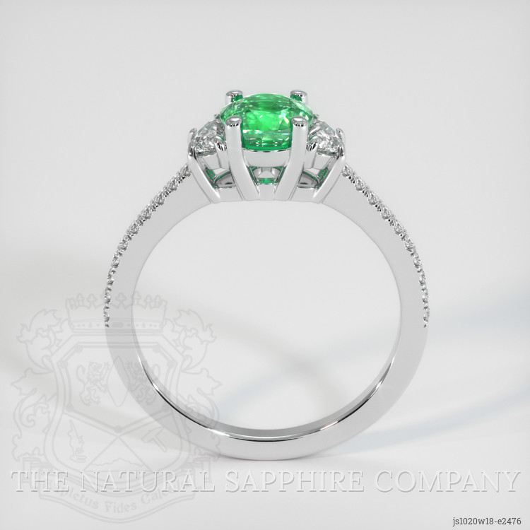 Three Stone Emerald Ring 0.85 Ct., 18K White Gold