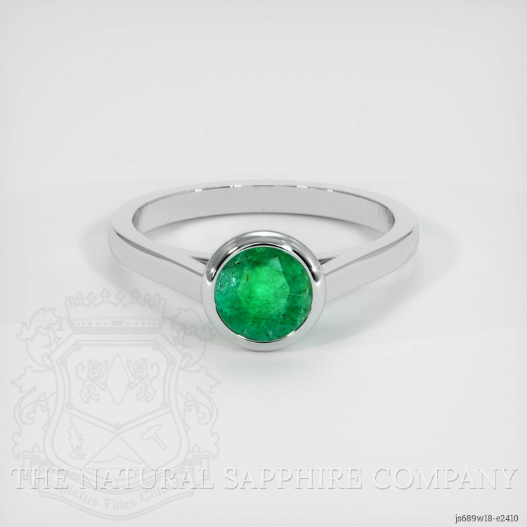 Bezel Emerald Ring 0.89 Ct., 18K White Gold