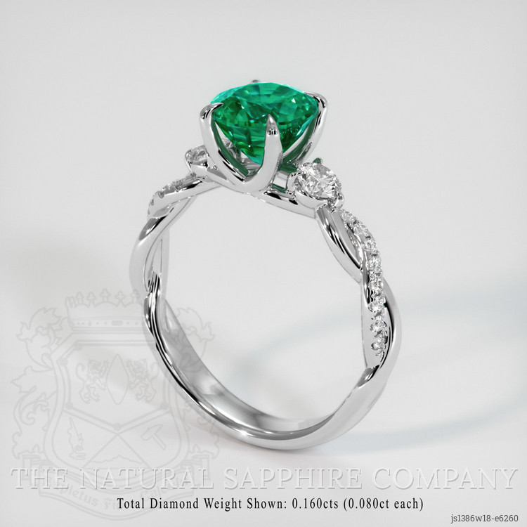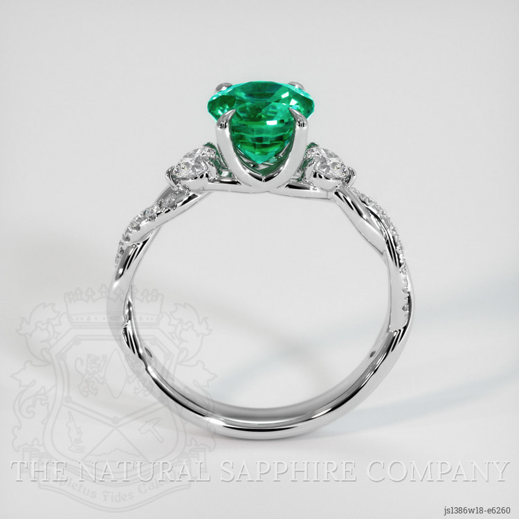 Setting this masterpiece is a band of resplendent 18K white gold, a choice that not only reinforces the ring's luxury but also complements the gemstones it embraces. Our commitment to excellence ensures that the gold is as pure and luminous as the love it celebrates, designed to last through the ages with its strength and sheen intact. This ring is the manifestation of desire and achievement, a beautiful reflection of one's status and sophisticated taste. In every facet, from the ethically sourced emerald to the impeccable setting, it speaks of a refined sensibility. Owning it is not just an indulgence; it is an affirmation of the discerning eye, a versatile jewel ready to claim its place in family stories and legacy collections.