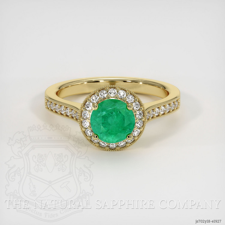 Pave Emerald Ring 0.97 Ct., 18K Yellow Gold