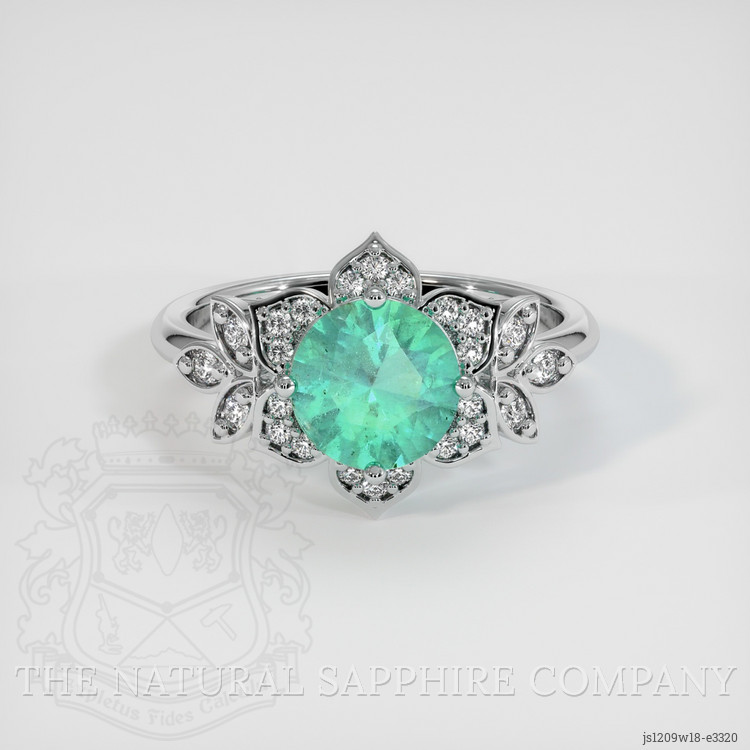 Our pièce de résistance is a stunning 1.07-carat emerald. Carefully sourced from Brazil, this round-shaped emerald boasts dimensions of 7.41 x 7.40 x 4.19 mm. Its mixed brilliant cut ensures a brilliance that captivates the eye at first glance. With a clarity grade of very slightly included, it stands head and shoulders above many high-end rings on the market today. This means that when you compare this emerald to others, it maintains a transparent allure, with only the finest inclusions discernible even to the most scrutinizing eye. The medium color saturation coupled with an excellent polish result in a vibrant and glowing green that represents the pinnacle of natural beauty.