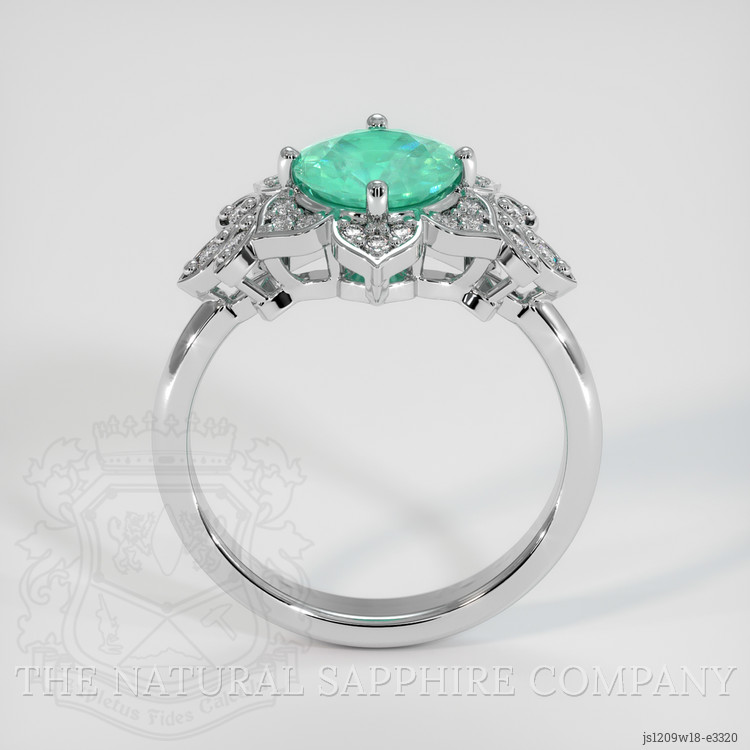 Our design incorporates a delightful juxtaposition of emerald and diamond. Featuring white round-shaped diamonds of approximately 0.18 and 0.09 carats, this ring maximizes brilliance and creates visual continuity. With a VS1/VS2 clarity and an F color grade, these diamonds offer exceptional transparency and a hue that complements the vibrant emerald perfectly. This harmonious blend of gemstones results in an overall appearance of grace and sophistication unrivaled by competitors.